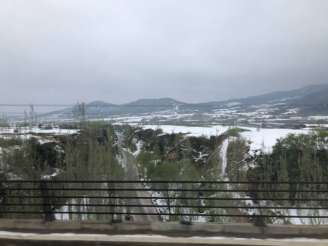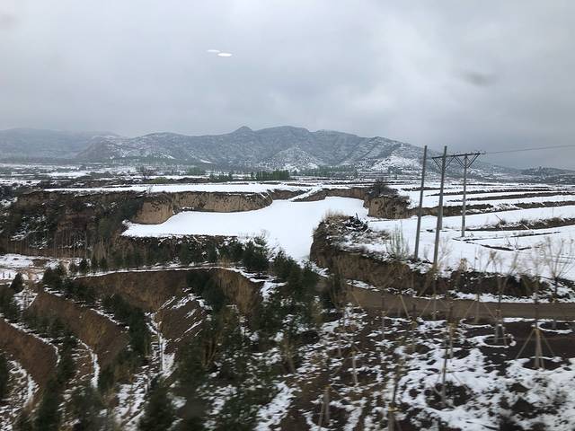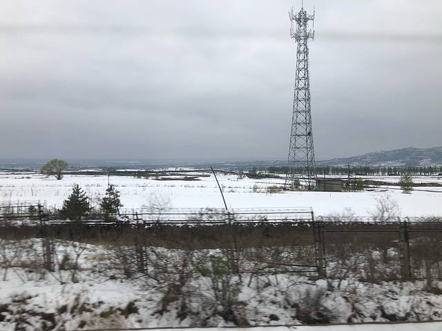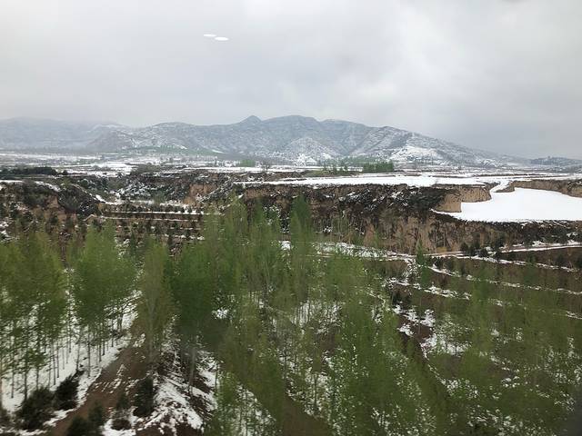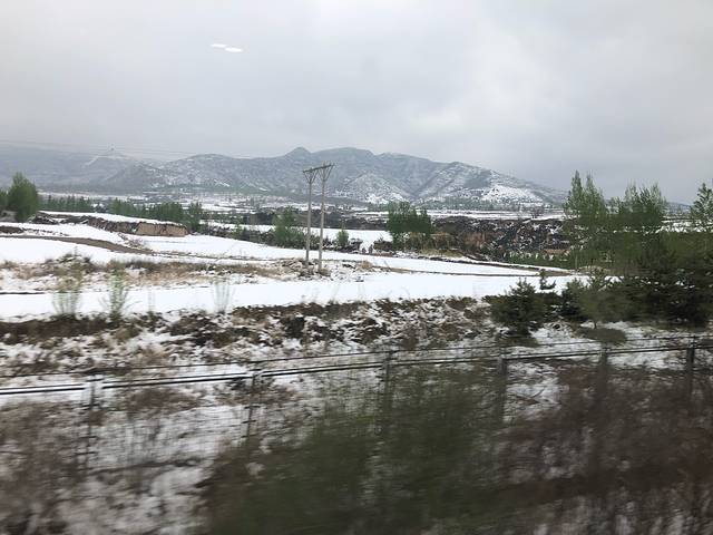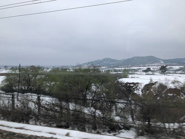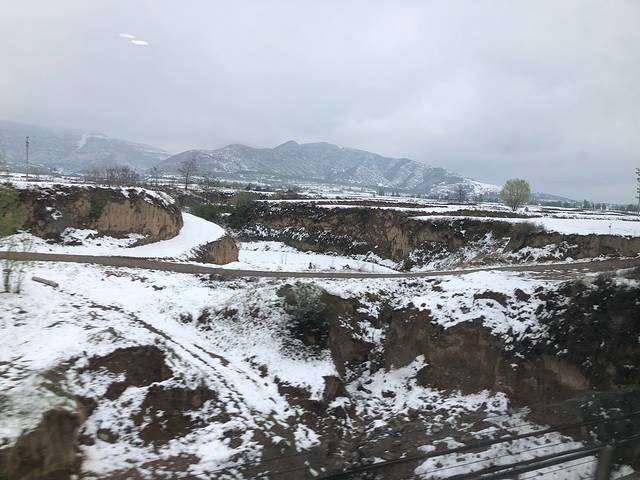 坐动车去机场。郊区雪还没化