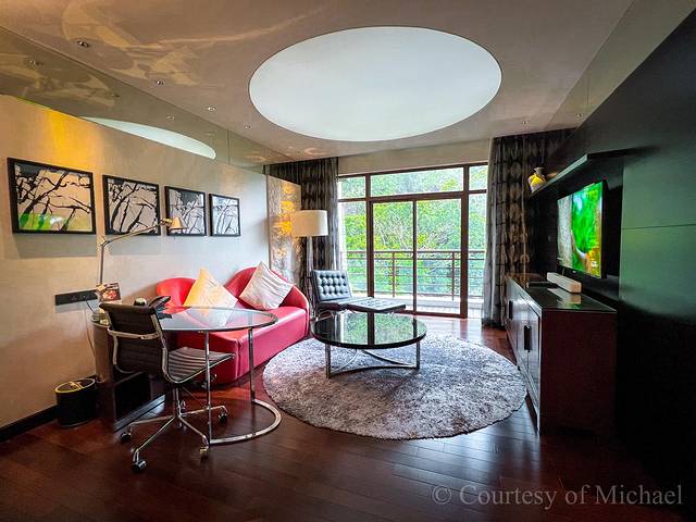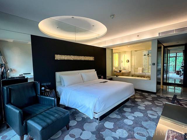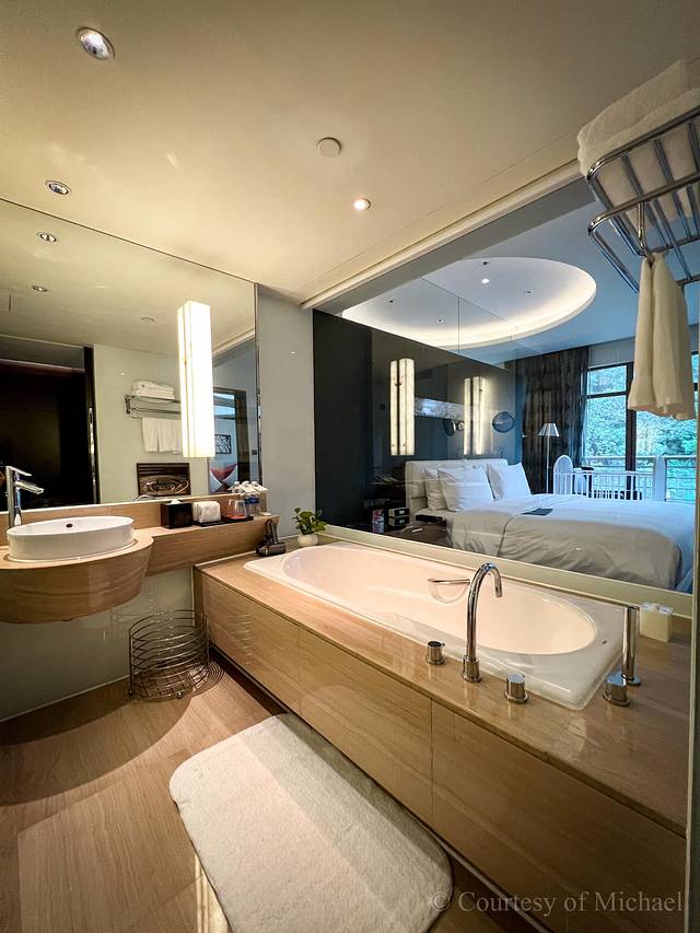 此次选择的是豪华套房备有私人阳台,可欣赏宁静美丽的庭院或环山之景。套房空间巨大,带有独立浴缸和热带雨林淋浴的大理石浴室,整理装修奢华大气,空间感极强。