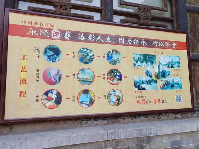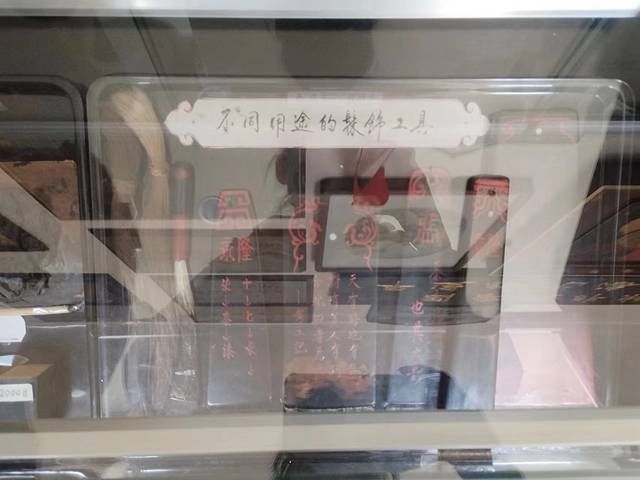 客服小姐姐也带我们去后院展览馆中参观了一下,通过她的讲解我们了解到推光漆器是怎么制作的,同时展览馆内从材料到制作整个工艺线流程都展现到了人们眼前。