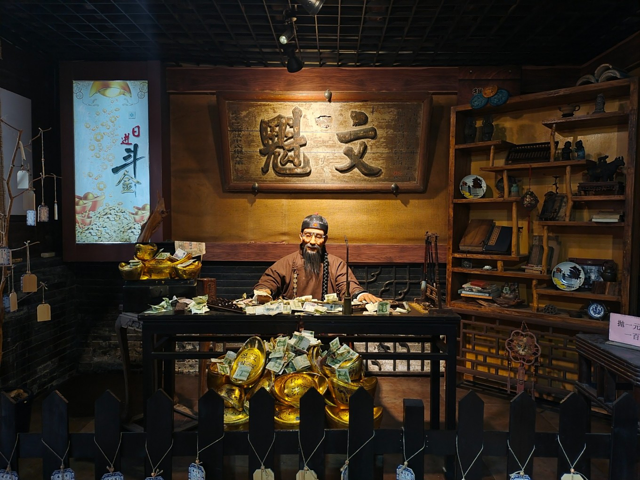 在这里我们看到了民间工艺陈列厅,穿过门厅,院内南面耳房为住房用品陈列;对面是当时接待重要宾客的大烟房,在中院南厢的原账房内,现设有百川通的全模型,北厢房是当时的银窖。