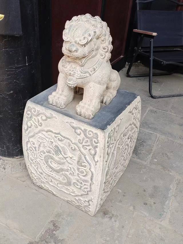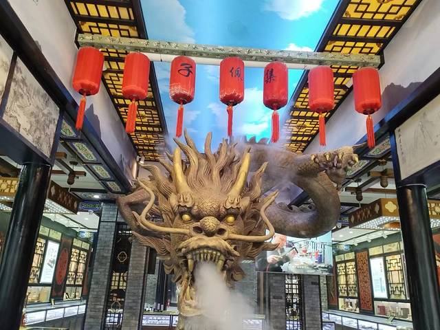 我们在走向沿着南大街向镖局博物馆行走的时候,在街道看见一个巨大的龙头在一家店面门中间,很是吸晴,就想进去拍照。
