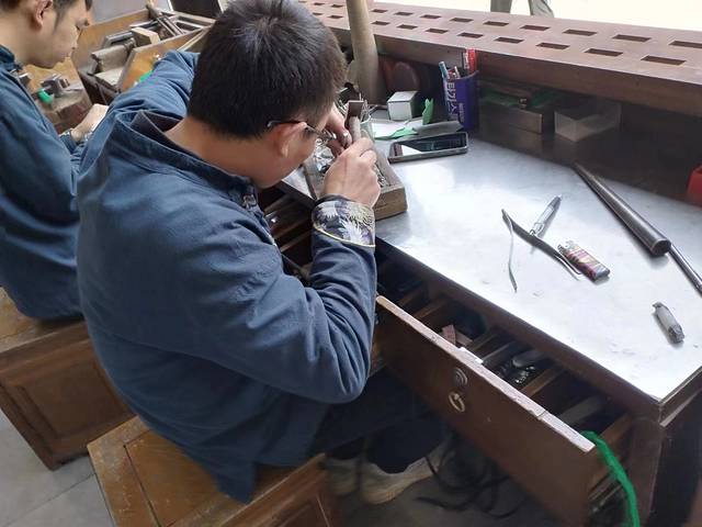 进门就看见有师傅在打银子,询问了一下店员,店员说想做定制什么款式师傅也可以现做,制作时间为一个小时左右,还带我们在后面看了一下 平遥 一些的习俗。