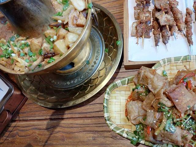 逛累了之后,我们选择了很多人都推荐的老赵家铜火锅去觅食,点了“旱火锅”中的什锦铜火锅,点了点炒菜和烧烤。推荐什锦铜火锅,热气腾腾的,里面的土豆炖的软绵绵的,入味,里面还有肉丸、海带、豆腐皮等等,都很不错。烧烤也不是很辣适合我的味,炒菜味道也可以,真的适合选择困难症的我们。如果有和我们一样不知道怎么选的,铜火锅是一个不错的选择。