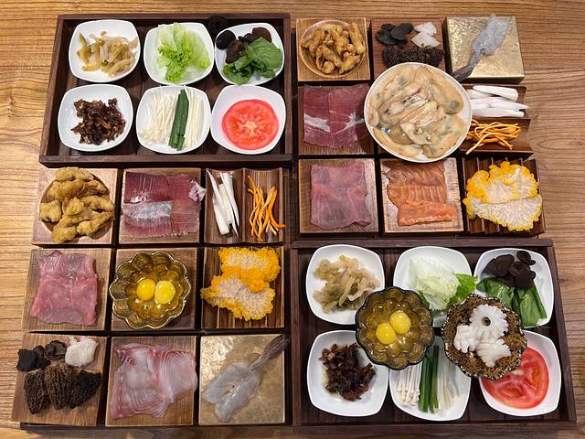 若问深夜吃什么,第一顿还得是云南米线。当服务员端上超过一百度的汤锅后,再给铺开九个各式小菜的碟子,配上一碗米线,云南米线就齐活了。 吃法是有点讲究的,先往汤里放生的肉蛋,如鸡蛋和牛肉片,再放熟的肉和蘑菇蔬菜,最后放米线, 开吃。