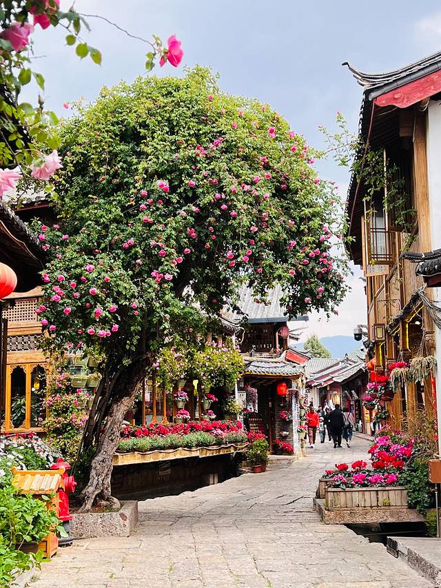 我是第一次去到云南,而老婆是第二次去,幸好听从老婆的选择丽江古城外围的酒店。 坐飞机从北京到丽江,再坐机场巴士到丽江古城,已经是晚上十点了。 我们从依稀的灯光里,看见有葱笼的大树立于道路两侧, 旁边有满树的三角梅或是杜鹃在开放, 大概明了这里是丽江。