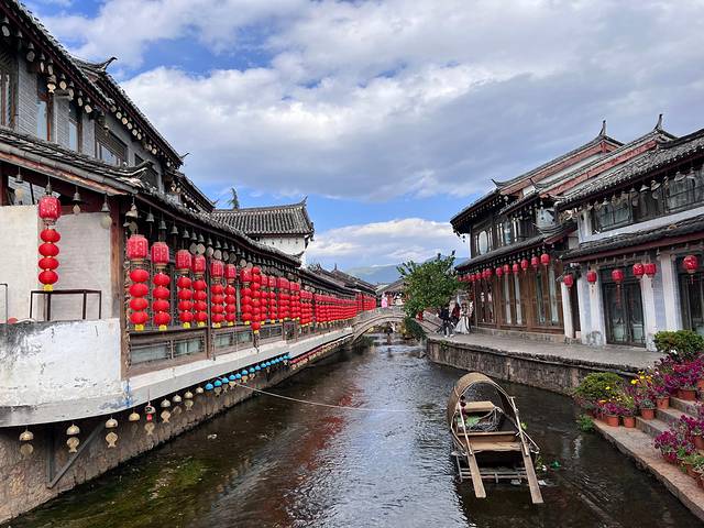 我们用了整整一天半,用脚步踏遍了古城的主要街道。简单来说,古城有几个动人之处:一是小河里水草和两岸的花树极构成了的美丽彩绘画卷; 二是花园与商铺完美融合,有个古意盎然的院子由鲜花和榕树包裹,我们不由自住的走了进去,一个老头和善的询问是否要住宿,只能赶忙说我们只是参观下,简直分不清;三是东巴的象形文字无处不在。