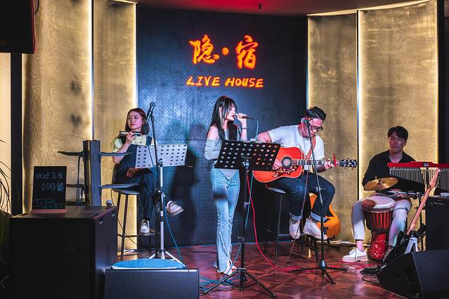 民宿自带的小酒馆,入口处写着“你身边的演唱会”,一点儿也不夸张,主理人竟然签约了一个乐队,三五好友,听着民谣,喝着小酒,那简直太有情调了。