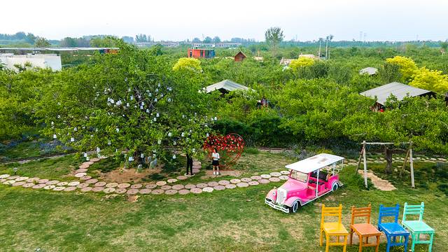 这个季节虽然没有梨花盛开的景色,但那郁郁葱葱的梨树也是别有一番风情,乐园内还设置了许多网红拍照打卡点,随手一拍,就是一张自带ins风的唯美大片,由此还吸引了不少情侣来这里打卡。