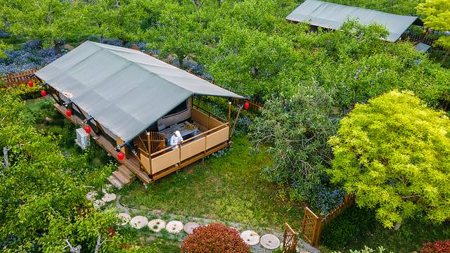 处于梨园中的梨墅帐篷酒店,真的是别有一番情调,我还真是第一次住在果园里,白天逛逛乐园,夜色时果园及帐篷彩色的灯亮起,听着四周的虫鸣声,与大自然亲密接触,那感觉真的非常梦幻。