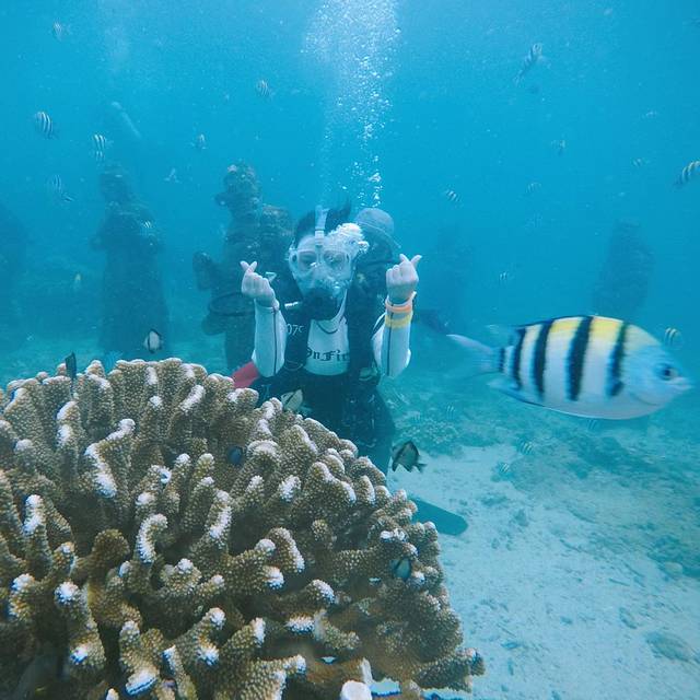 人生第一次潜入海底与鱼儿亲密接触,虽然海水压强大,但丝毫不会冲刷掉我直面大海的信心。