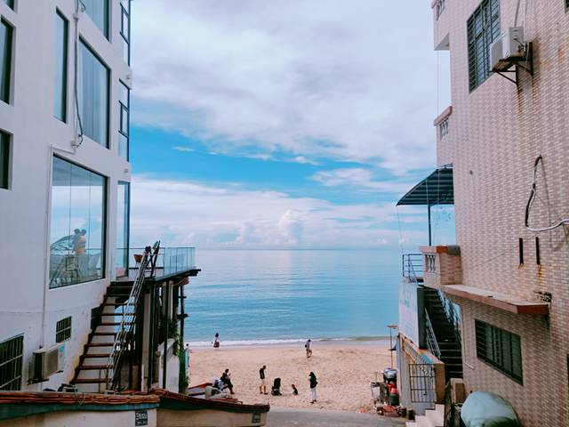 该如何形容它的独特韵味呢?那时候我看到了人间最美的晚霞,一缕缕火红的光束晕染了水蓝色的天空,山与大海都被这绮丽的光所笼罩,我在这里停下来,静静观看,慢慢地、慢慢地,红光终于暗淡下沉天际,剩下紫蓝色的天空与大海交相辉映,大海里游泳的人们被管理人员吼叫上岸,结束了一天的欢乐。