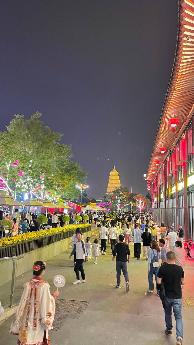 大雁塔广场比较大,我们在旅行社帮我们约好的妆造店选好服务做好造型,就来到大唐不夜城逛逛了。。