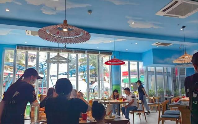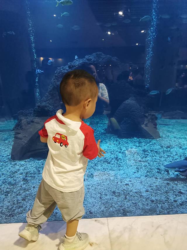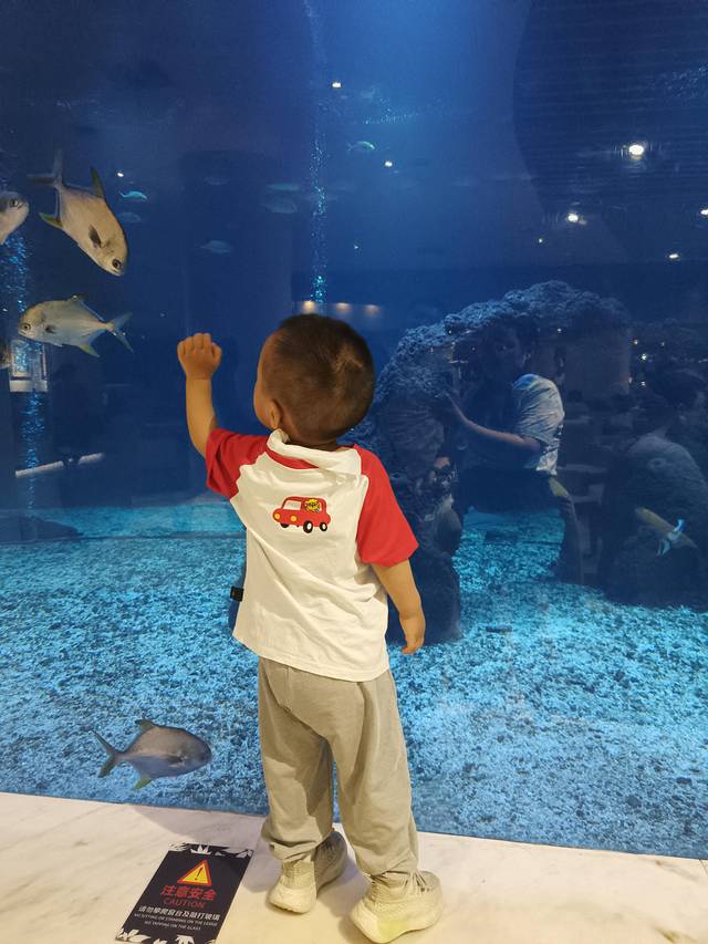 提前一个月在抖音直播间定的房是最划算的,平时这个庭院家庭套房也要1000左右,我定的五一期间1400而且附送两人的海蓝餐厅自住晚餐,单买两人自助晚餐也要五百多。海蓝餐厅的特色就是有一个大的水族箱,晚餐期间会有喂食表演,听说还有人鱼表演,但是我们当晚没有看到人鱼。坐到挨着玻璃墙的位置每人加200的VIP位置费,兜兜小朋友去过大的海洋馆了,对这些小鱼不是很感兴趣,我们就坐了普通位。整体餐厅吃的还行,毕竟三亚物价这么贵,出去随便吃吃都三百多,附送的自助餐还有什么理由要求更多呢,满足了,满足了。