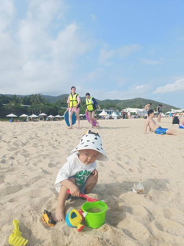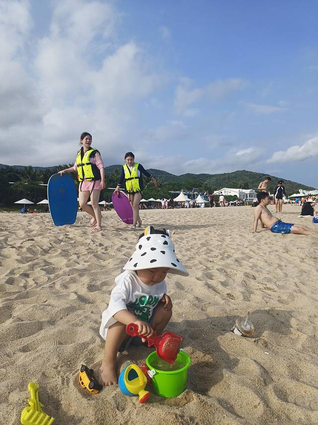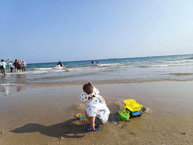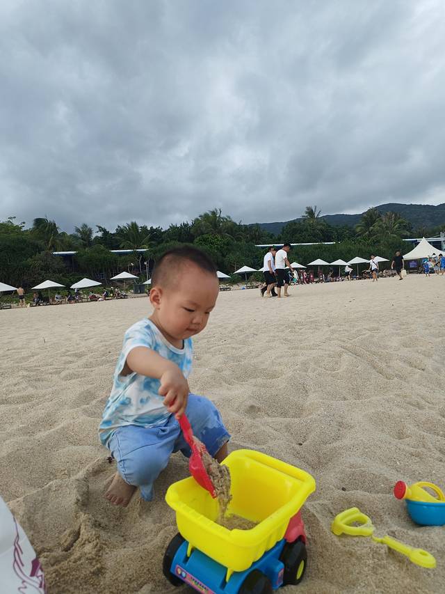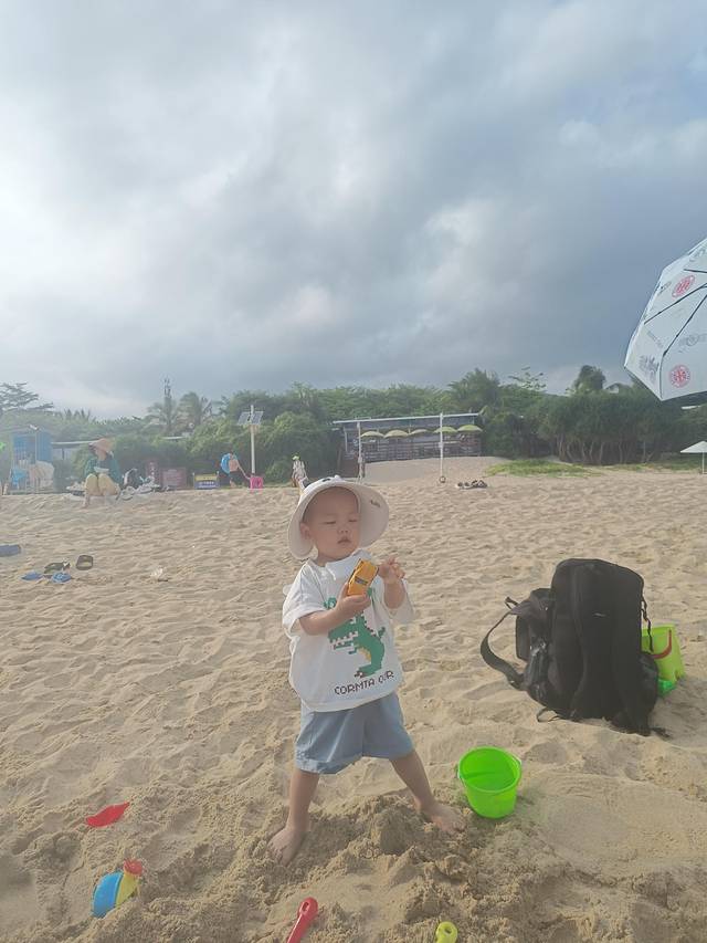 小朋友在沙滩玩的好开心,每次都不想回来,衣服换了三四套。带小朋友来的一定要多带衣服,尤其裤子备十条。。。。这边海风还是很大的,如果从水里出来,穿着湿衣服在沙滩上玩容易感冒。小朋友如果没照顾好生病了,整个旅程都很难轻松了.