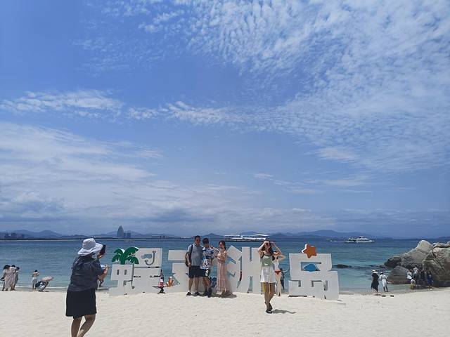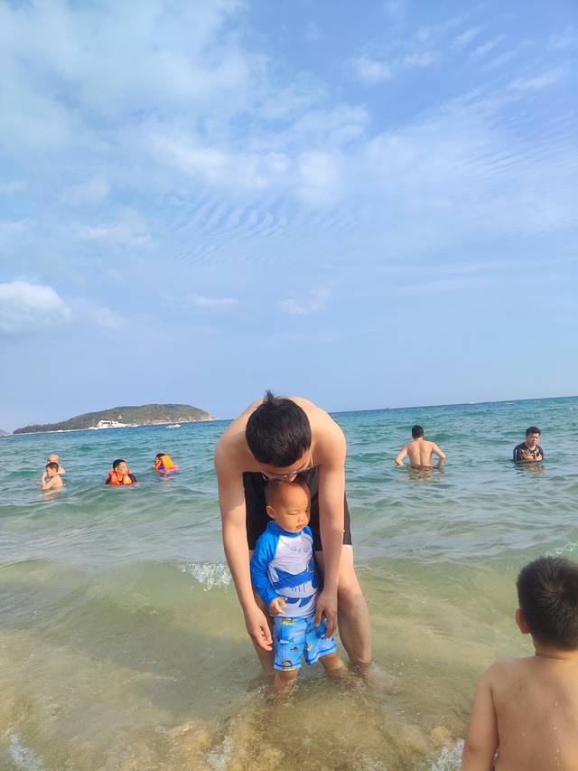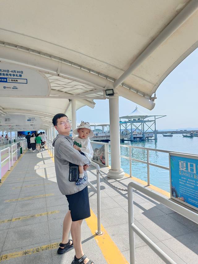 蜈支洲岛的海水是整个三亚最美的,据说能见度水下20米,有非常多的水上项目可以玩,但是带着娃啥项目也玩不成。提前一天抖音购门船票加豪华电瓶车环岛游,又可以每个人省四十块钱,真香。豪华电瓶车环岛游每个站点都可以停靠下车游览,强烈建议带娃的前三站不要下来,电瓶车上看一路就可以了,尤其是第一站下车后要爬个小山,体力一下就耗尽了(也可能是我们身体素质太差)。总之呢娃总要抱,差点累死了。体力差的只有两个站点建议下车,情人岛(不是情人谷)和最后一个私人定制拍摄地。