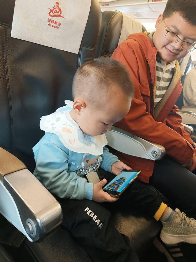 第一天桂林直飞三亚,桂林到三亚真的很方便,桂林航空9:00-10:40的飞机全价1100多,五一都是这个价,平时非节假日才300多,要不是上班,时不时都想去一趟。。。。兜兜小朋友第一次坐飞机,所幸去的时候全程都没有哭,其实一共一个小时二十分钟就到了,看看电视吃吃零食,自己一个人独立坐在座位上系着安全带,表现超棒。