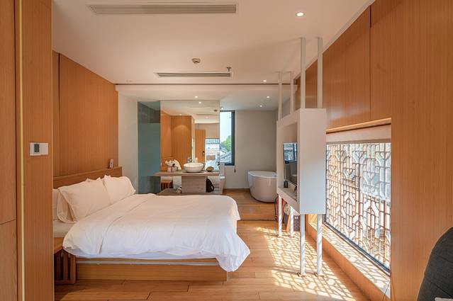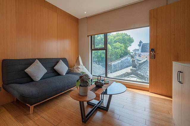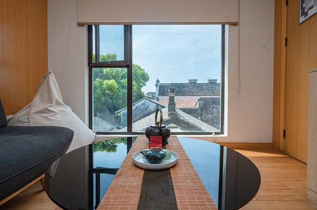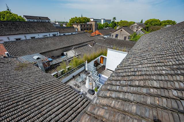 白墙黑瓦,意境十足,这家坐落在锦溪古镇上的精致民宿很有特色,院落式布局,砖雕门罩,石雕漏窗,在老街上低调而大气。