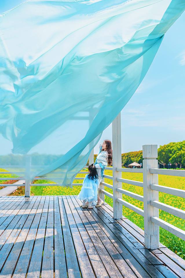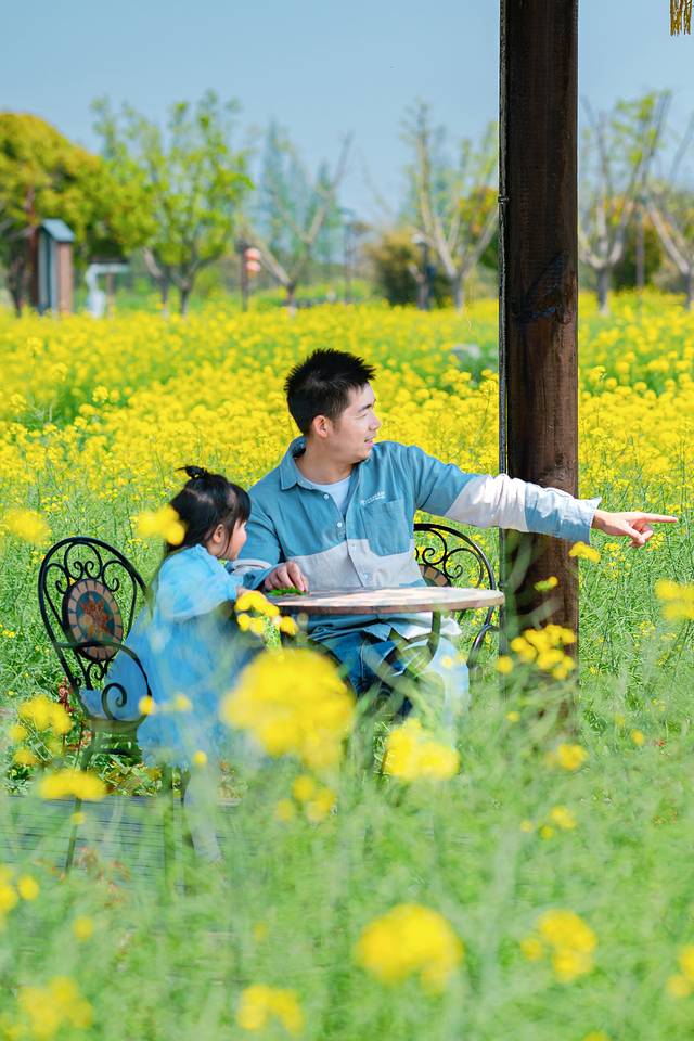 一大片明亮鲜花的油菜花在阳光下灿烂绽放,和女儿置身花海仿佛走进了画里,油菜花从不缺席春天,就像我不愿错过你的童年,春天有一百种花开,勇敢的你啊也要努力绽放……