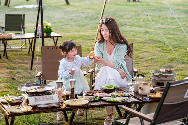 露营当然少不了围炉煮茶+烧烤BBQ,炭火在炉中噼里啪啦,再配上一壶小酒,看云卷云舒,整个氛围感拉满~