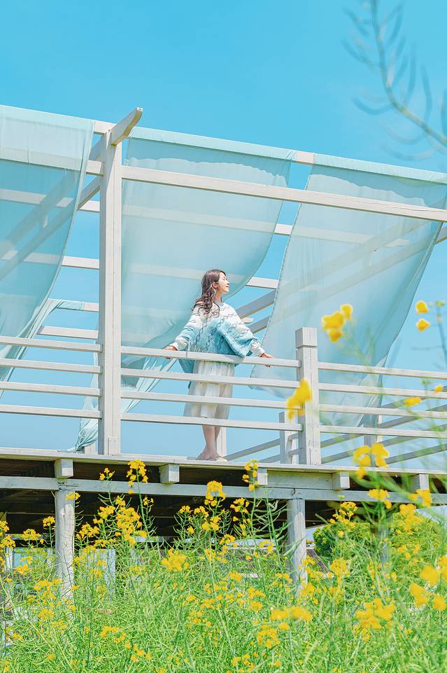 村里还有一大片的花海地,每个季节都种植不同的花,这个季节还有很多油菜花,在花丛中肆意奔跑,才不负大好春光,还设了好看的拍照打卡点,简直太出片了~