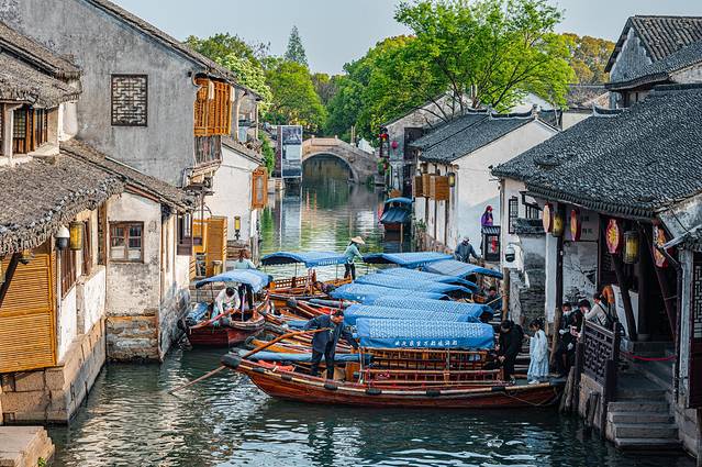 乌镇商业,西塘文艺,安昌烟火,周庄多了一丝婉转的温柔,明清老建筑依河而建,划桨女唱着苏州小调,充满着诗情画意~