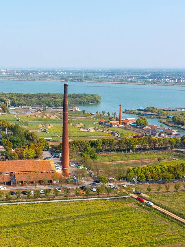 离开祁浜村,一路自驾来到了祝甸砖窑文化馆,昔日窑洞中的炉火,随着时代变迁而渐渐堙灭,30年前这里还是一座正常运营的砖瓦窑,如今摇身一变成了非常红的热门打卡地,这里三面环水,一侧是乡村田园和祝甸湖,砖红色的窑厂斑驳岁月痕迹,200多米高的砖红色大烟囱高耸入云,极具特色。