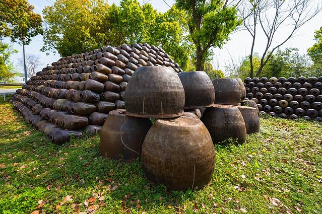 门口有着很多陶瓷酒缸,摆放得非常整齐,成为了很好的一个拍照背景~