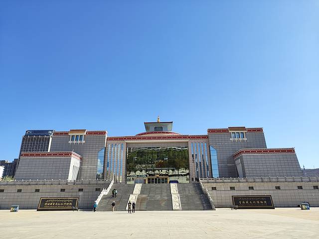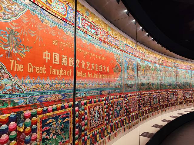 青海省藏文化博物馆分为两个大馆,一个是藏医药博物馆,免费,一个是藏文化博物馆,收费60。藏医药博物馆里面有一些藏药来源,个人兴趣不高的原因是看不懂,就匆匆走过。藏文化博物馆有世界上最大的唐卡著称,一进门工作人员会让你直接上四楼,在一楼楼梯边可以领一个盖章纸,每个展馆都可以免费盖章,最后出门还可以让工作人员写上你的藏文名字。