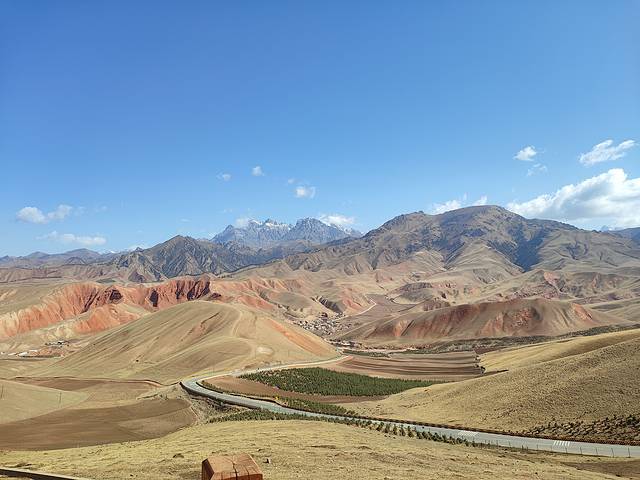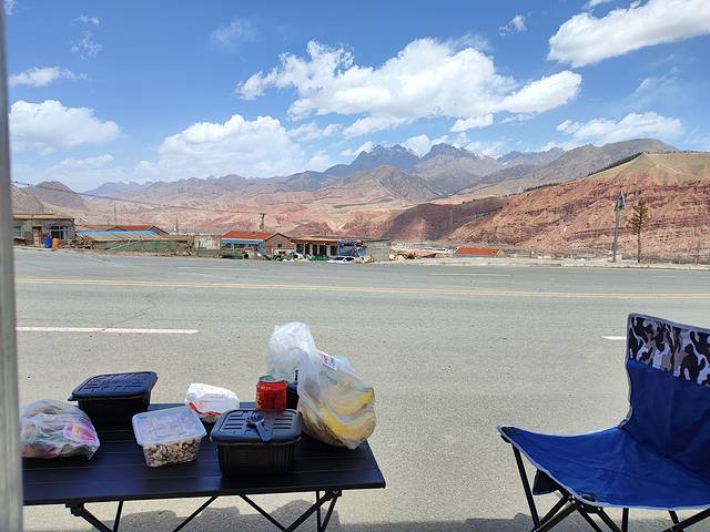 中午我们在路边进行了简单午餐,我们专门去了一条县城旁边的道路,结果是人家驾校考试的道路,来来回回的人都在看我们。吃完收拾完就往西宁市返回,途径了阿柔大寺,这个就在路边,还有岗什卡雪峰,可以开到山脚下,大概十多公里。