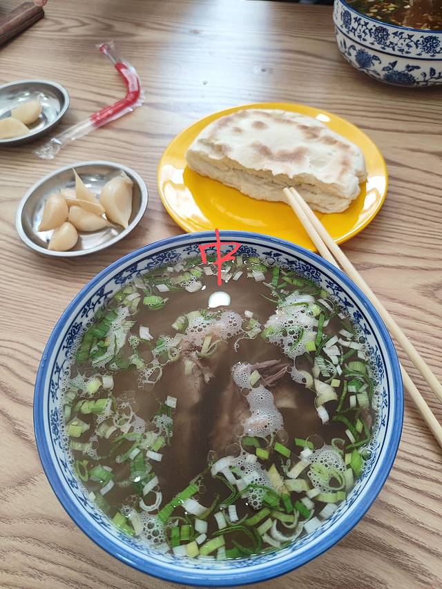 中午到了西宁市后,前往吾悦广场后面有家牦牛骨头汤,对于我这种爱喝汤的人来说简直绝了,一碗18不便宜,但是里面有很多牦牛肉,我贫瘠的语言只能说真的好吃,四个人又多要了半斤提骨肉都没有吃完。