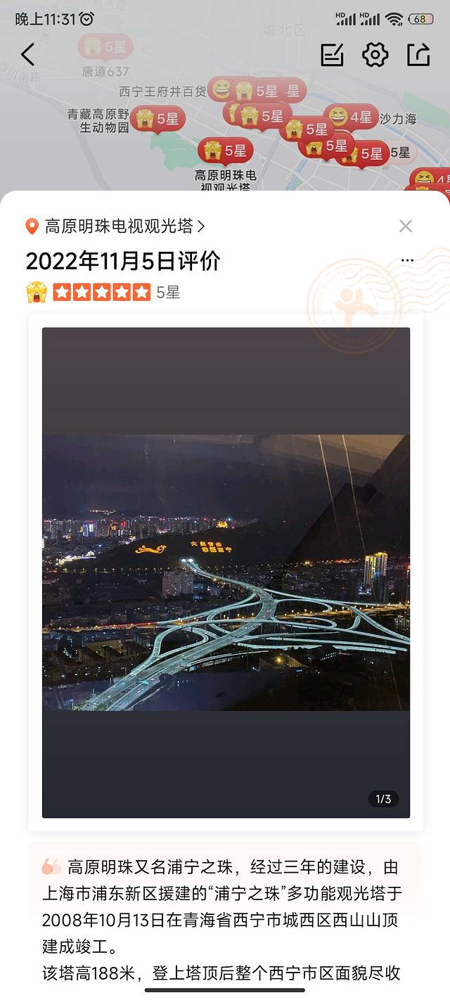 吃完饭也就8点不到,西宁本身天黑就晚,我们决定上高原明珠看看,也叫浦宁之珠,是上海合建的,抖音买票18元就可上塔,现场要25,排队坐电梯还限流,但是西宁的夜景很一般,而且只有一边可以看,另一边就是山,整个塔也很小,没有两步就到头了,之前还能看到山上有字,大美青海啥啥,现在也没了。个人觉得塔下就能看到西宁夜景,没必要上去。