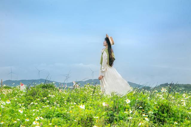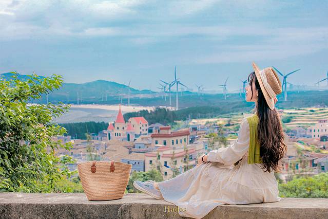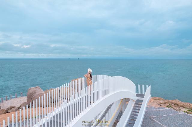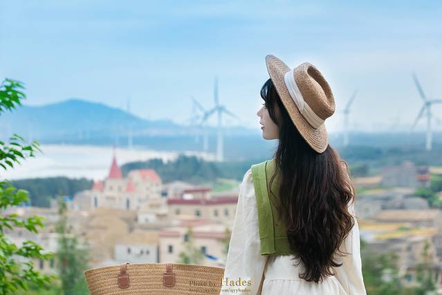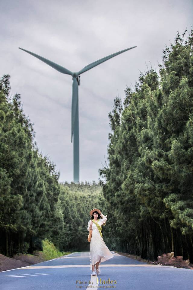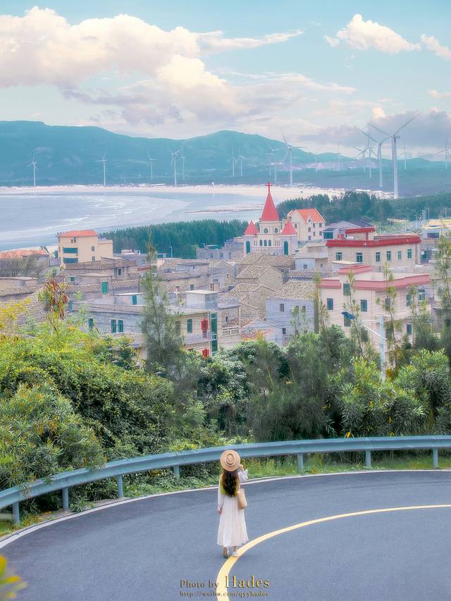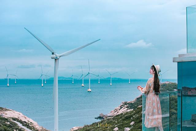 平潭绵长的海岸线,成片的风车群,错落的建筑,让这座岛屿有了更多浪漫与童话的气质。虽然天气不给力,但沿着公路走一走,也能收获一批美照!可能大家会好奇,为什么照片里的小姐姐手都要扶着帽子?那是因为平潭岛的风真的太大了,手一松,帽子可能就要飞走了!这或许就是岛上会有那么多风车的原因吧!