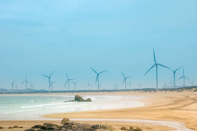 平潭岛上立有众多风车田,沙滩绵长细软,风光清新秀丽。夏季夜晚出现的荧光海——蓝眼泪更是摄影爱好者和游客追捧的奇幻美景。