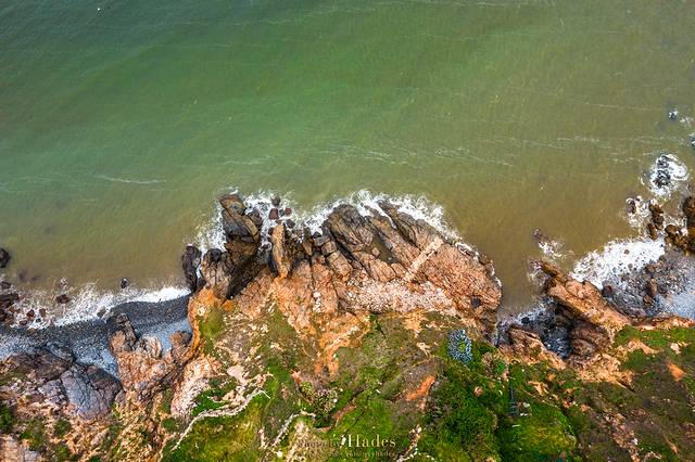黄褐色的岩石,配上蓝绿的海水,让68海里风景区有了种乡愁浓郁的色彩。来到这里,不仅想起了余光中先生那首著名的《乡愁》。