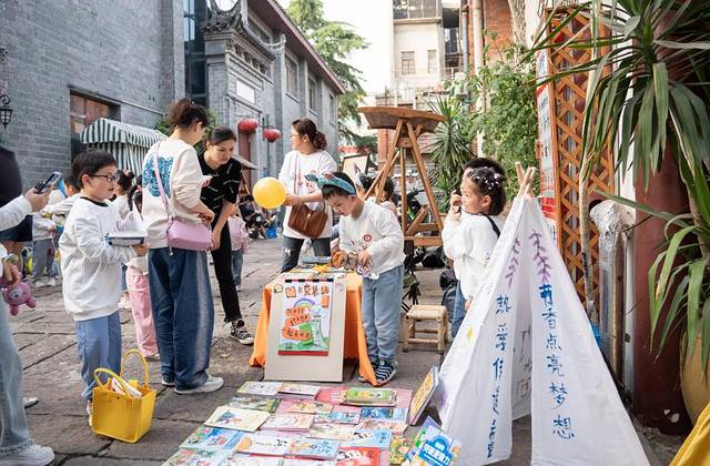 在这诗意般的春天,帐篷书市欢乐开场,一张张笑脸,一个个摆满奇妙作品的展台、一块块精美而又富有创意的海报,一家家“书店”,成为古城里最美的一道风景线。