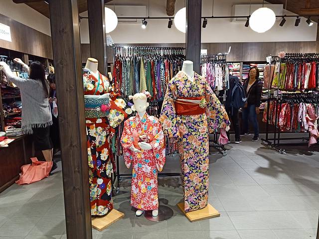 和服是提前在官网上预定的,著名的冈本和服店的和服。我的建议是先想好自己想要什么色系的和服,然后只挑选这个色系的就行,不然你的眼睛会挑花的。店里有专门的阿姨给你穿和服,和服讲究胸腹一体,穿法极其复杂,只有穿对了才好看得多呢~