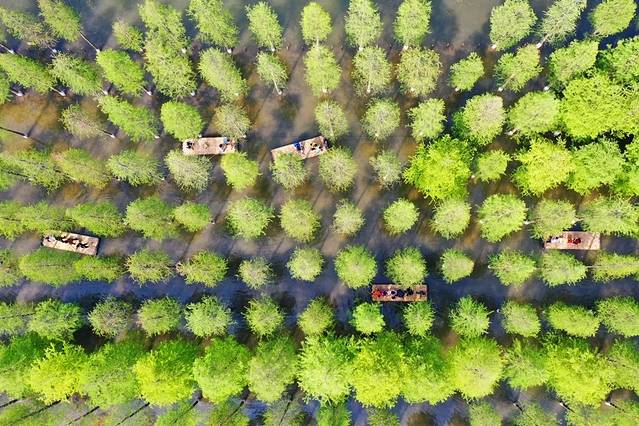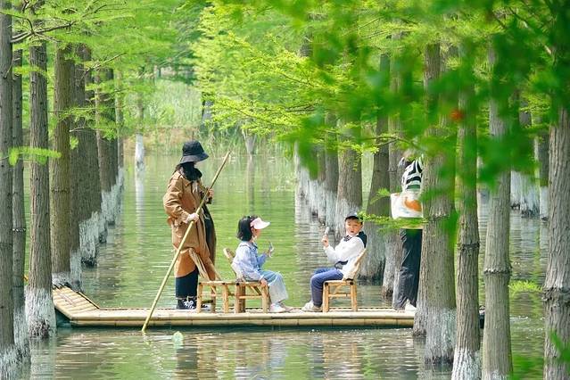 洪泽湖湿地景区中,水杉林郁郁葱葱,可以坐上竹筏,在光影斑驳的水杉林中畅游,亲身感受夏天的到来。更有芦苇迷宫等你激情畅玩,坐上快艇,在迷宫中遨游,体验风驰电掣。