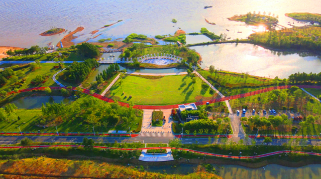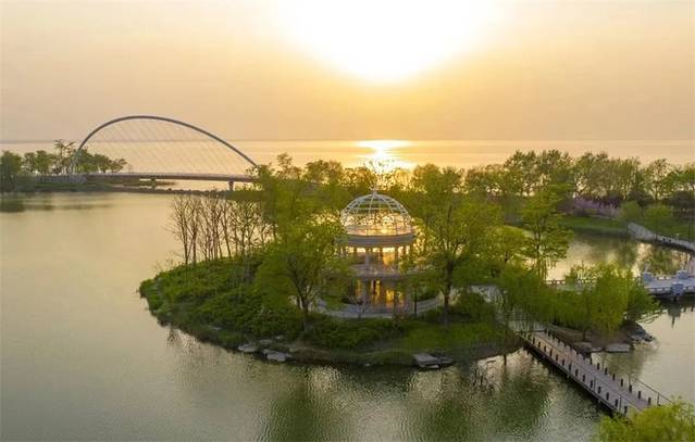 罗曼园中绿树葱葱,展示出一派新形象。到园中的栈桥上散步,眺望远方被绿意笼罩的罗曼桥,满园生机无限。湖滨公园中绿树成荫,搭配着骆马湖的湖光景致,仿佛一幅大美的生态画卷。