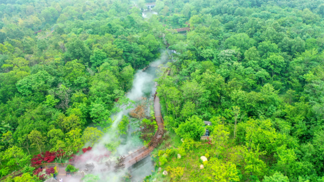 三台山国家森林公园中,满园的树木已从清新换为浓郁,到树林中徜徉,欣赏光影斑驳的美感。去雾森栈道徜徉,听林中鸟鸣啁啾,感受夏日的声音,让人心旷神怡。
