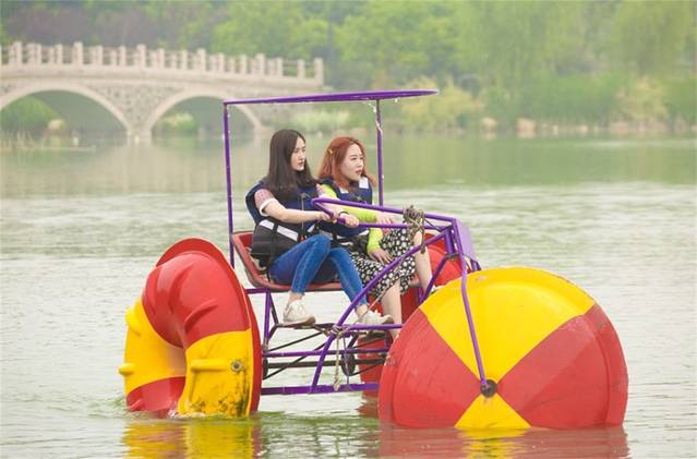 三台山国家森林公园中,镜湖附近拓展基地的皮划艇、水上自行车、碰碰球,各种水上趣味项目非常多!还可以到彩虹沙滩上游玩,或是躺在躺椅上看远方水波潋滟的湖光美景,静赏三台山国家森林公园的初夏好风光。