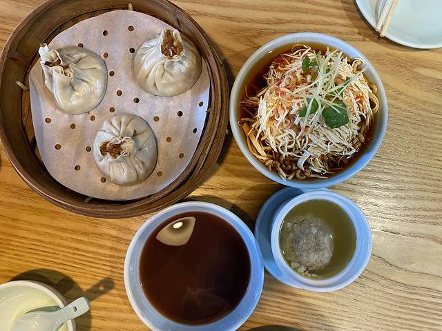 他家蟹粉汤包还行,里面放猪皮冻了,因为比较黏嘴哈哈哈~!
