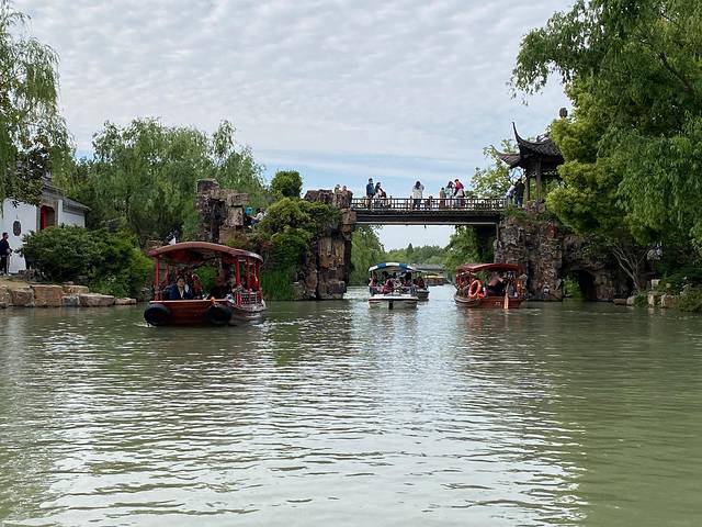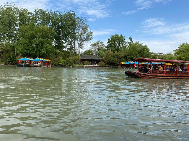 放下行李直接买了点吃的去的瘦西湖,我们从皮市街骑小黄车去的,大概不到二十分钟到瘦西湖南门。到瘦西湖南门经过扬州大学。我们去的时候人还不是那么多,游玩还是比较畅快的,南门进去后有游船,有大船和手摇的小船。手摇的小船800一条船,有一个小姐姐一边划船一边介绍瘦西湖,最后还会唱一首扬州小调。船的行驶过程在40分钟左右。