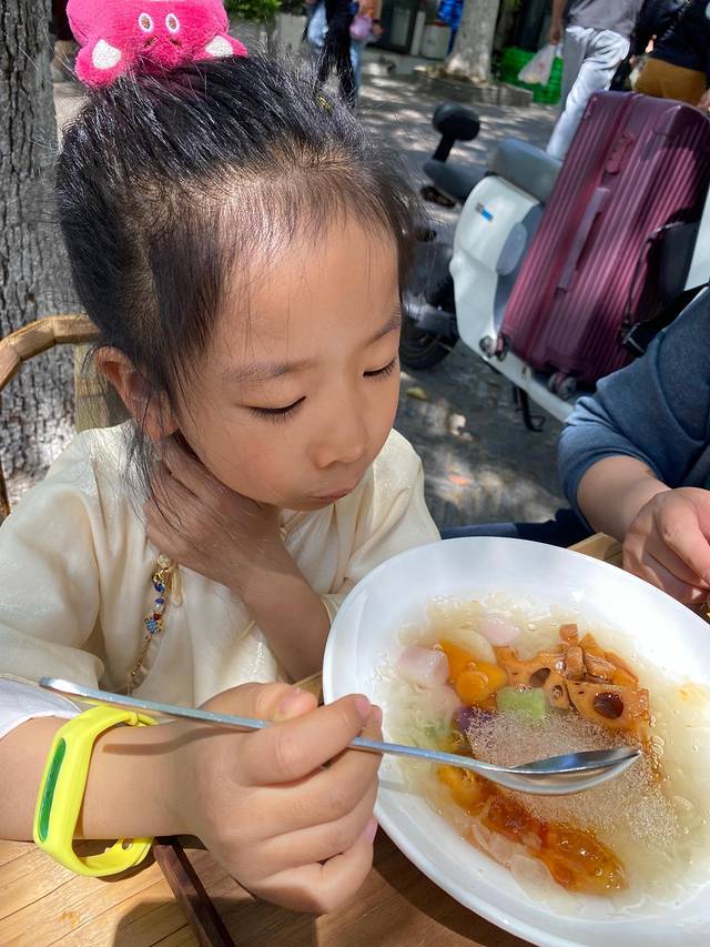 一开始想吃粗茶淡饭,一去哪排了好长的队,就是一个小屋里面有4、5个桌子,没有发号的就是自己排着,我觉得没有三个小时都吃不上饭。而且他家环境真的挺一般的,黑乎乎的。还要说一下另一家网红赵氏叠汤圆,我是领朵朵上厕所的时候无意间经过她家后厨,就这么说吧,你看过她家后厨你都不想吃了,幸亏我们没有。