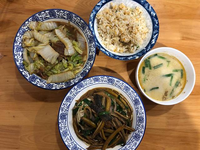 我们从瘦西湖北门出去的,因为手机快没电了,不能再导航了,就直接打车去吃的范水长鱼面。他家上过早餐中国,还可以没有踩雷,就是牛肉炒白菜有点像炖的,而且还有点辣,面还是挺好吃的。我们吃的是盖浇面。