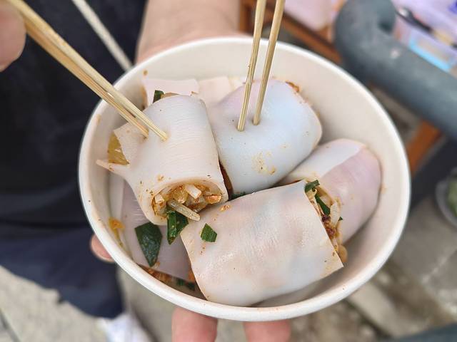 中途实在走不动了,坐了观光车,中途遇到老奶奶买了卷粉吃,怎么说呢,味道就是吃多了会腻,刚吃觉得挺好吃。