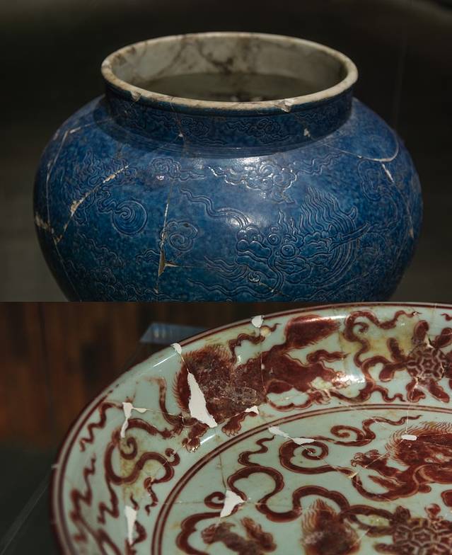 青花瓷,最为瓷器在大众心中最熟悉的模样,御窑厂里自然出土了大量的青花瓷器。纪录片中介绍到钴料在高温下烧制发生化学反应,形成深蓝色的颜色,与白色瓷胎相得益彰,形成了青花瓷的独特风格。