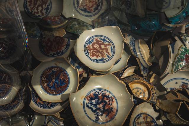 除了深蓝色的青花,巧妙利用各种矿物质材料在高温下的氧化还原反应,瓷器还被赋予了各种各样的颜色。釉上彩和釉下彩的争奇斗艳,不仅代表了当时景德镇工匠们的思考和感悟,也是材料科学在当时已经发展到一定高度的里程碑。