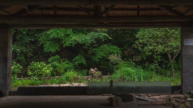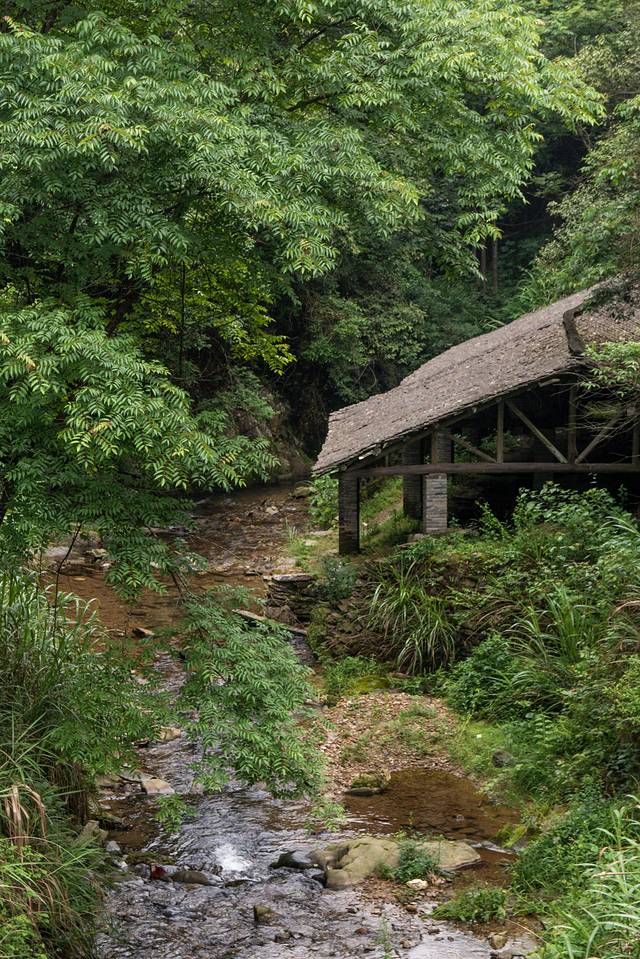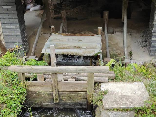 除了三宝美术馆,三宝村里还有例如三宝陶艺村博物馆,陶瓷墙,陶瓷马路等较为出名的打卡点,过了陶艺村博物馆,渐渐远离了人群,路两边的植被覆盖率越来越高,偶尔在溪水两旁能看见一些简易的木棚,这些大多都是水碓的地方,用于提取瓷土。