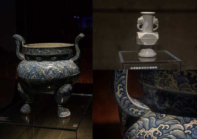 在纪录片中曾经提到,古时候景德镇的工匠们会用陶瓷去制作成青铜器的样子。看到这段介绍时并无太大感触,而当在御窑厂见到实物时,却带来了巨大的感动。青铜器和瓷器,两个不同年代的产物,景德镇的工匠们除了用陶瓷模仿青铜器的外形,不同于青铜器粗狂的风格,景德镇的工匠们还在上面赋予了陶瓷独有的纹路。玉般温润的表面,细腻的线条纹理,以及青铜器古朴的造型,这样的器物代表着文化的传承,代表着彼时工匠对前人的致敬,而两种巅峰工艺跨越时间长河又出现在了我们面前,好似古人们对现代人的尊尊教诲,教导我们应将传统文化赋予当下活力,勿忘中国千年文化,亦勿保守自封。