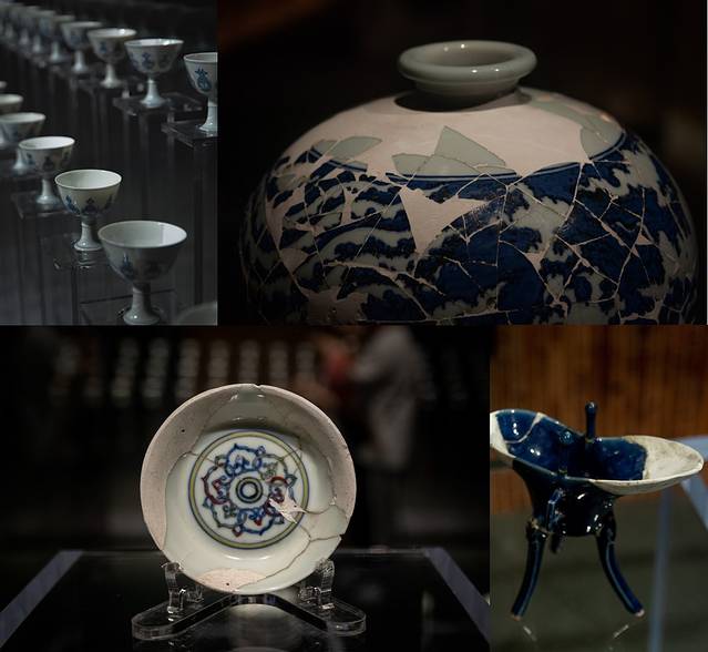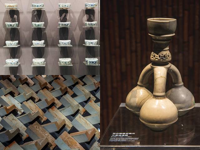 在感受完建筑的震撼之后,这里陈列的瓷器更是一件件达到了上万元的艺术品级别,而且没有玻璃罩子隔着,可以近距离的观赏。不同于御窑厂考古挖掘后的瓷器修复,这里的瓷器少了几分历史的沉重,但也多了一些现代艺术的考量,且完整无缺的优势。